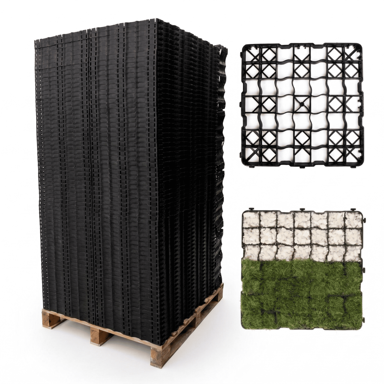 ✅ Łatwy i szybki montaż: Lekka modułowa konstrukcja (4 sztuki na 1 m²) znacząco obniża koszty transportu i ułatwia układanie na miejscu inwestycji.